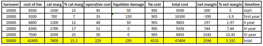 It is quite normal that the margin increases with time; this is fundamental concept of the recovery strategy of the vendor. The margin is increasing as the manufacturer cost is expected to decrease for a specific category during the time and the manufacturer is expecting also to introduce new configurations (with higher margin) during the life of the contract. However, the change process (described at pag 31 of DCCS Lot 1 Annex 4 – Service Level Requirements ) will limit the possibility for the manufacturer to introduce configurations with an higher price of the ones contained in the initial catalogue.