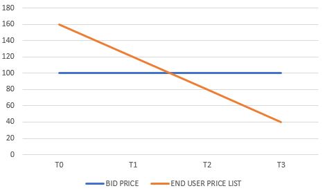 2) If this should happen, it is sure that in future all the tenderers will not include a cost reduction in their recovery strategy and the ration between the bid price and end user price list at time T0 will be higher.