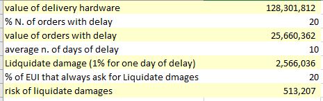 Fig 5 – BIT estimation of the risk for liquidate damages on late delivery.